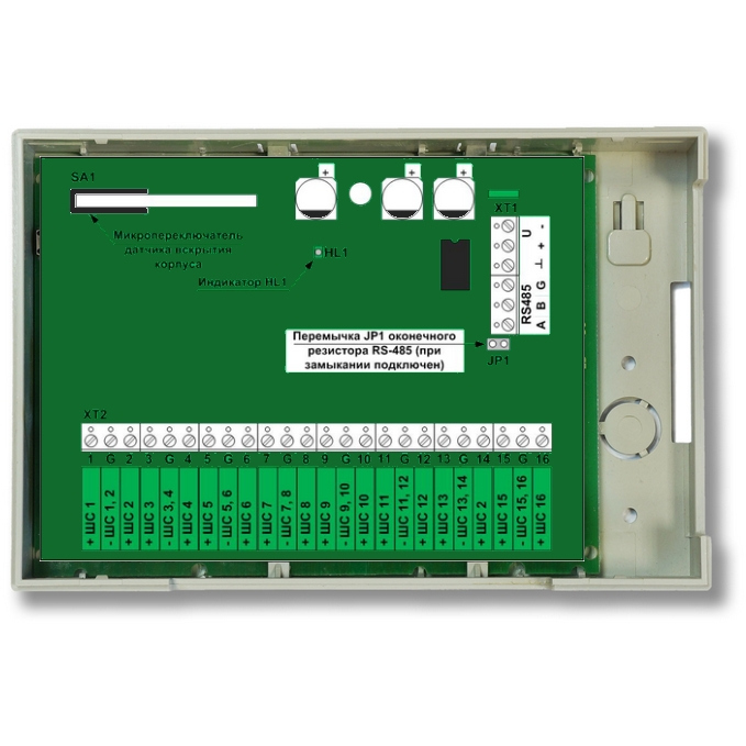- Количество контролируемых безадресных ШС 16